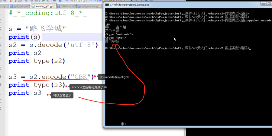 既然Python2并不会自动的把文件编码转为unicode存在内存里, 那就只能使出最后一招了,你自己人肉转。Py3 自动把文件编码转为unicode必定是调用了什么方法,这个方法就是,decode(解码) 和encode(编码)