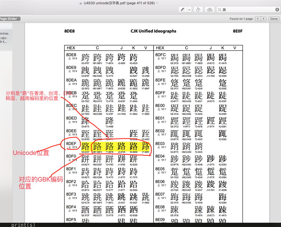 靠上面字节个数,虽然也能大体判断是什么类型,但总觉得不是很专业。 怎么才能精确的验证一个字符的编码呢,就是拿这些16进制的数跟编码表里去匹配。 “路飞学城”的unicode编码的映射位置是 u'\u8def\u98de\u5b66\u57ce' ,‘\u8def’ 就是‘路’,到表里搜一下。 “路飞学城”对应的GBK编码是'\xc2\xb7\xb7\xc9\xd1\xa7\xb3\xc7' ,2个字节一个中文,"路" 的二进制 "\xc2\xb7"是4个16进制,正好2字节,拿它到unicode映射表里对一下, 发现是G0-4237,并不是\xc2\xb7呀。。。擦。演砸了吧。。