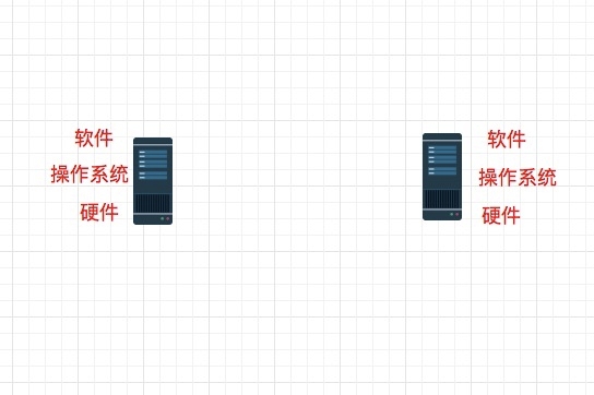 硬件之上安装好操作系统,然后装上软件你就可以正常使用了,但此时你也只能自己使用,像下图这样,每个人都拥有一台自己的机器,然而彼此孤立