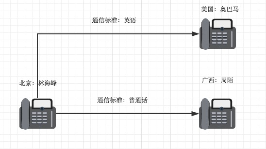 然而internet为何物?举一个简单的例子: 如果把一个人与这个人的有线电话比喻为一台计算机,那么其实两台计算机之间通信与两个人打电话之间通信的原理是一样的。 两个人之间想要打电话首先一点必须是接电话线,这就好比是计算机之间的通信首先要有物理链接介质,比如网线,交换机,路由器等网络设备。 通信的线路建好之后,只是物理层面有了可以承载数据的介质,要想通信,还需要我们按照某种规则组织我们的数据,这样对方在接收到数据后就可以按照相同的规则去解析出数据,这里说的规则指的就是:中国有很多地区,不同的地区有不同的方言,为了全中国人都可以听懂,大家统一讲普通话