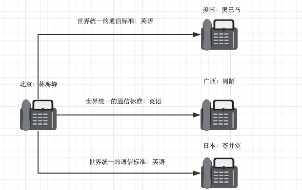 问题是,你不可能要求一个人/计算机掌握全世界的语言/标准,于是有了世界统一的通信标准:英语